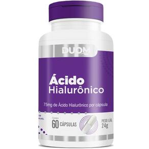Ácido hialurônico 75mg por cápsula 1 ao dia 60 cápsulas duom - descrição - O ácido hialurônico é uma substância naturalmente presente no organismo humano, uma molécula de açúcar que atrai a água e pode atuar como um lubrificante e absorver choques em partes móveis do corpo como as articulações. Do ácido hialurônico no nosso corpo, 56% dele está na pele, onde ele atua preenchendo o espaço entre as células, o que a mantém lisa, elástica e bem hidratada. O ácido hialurônico ha é um tipo de polissacarídeo composto por dissacarídeos repetidos de ácido d-glucurônico e n-acetil- d-glucosamina. O ha é dispensado em forma de sal de hialuronato. Essa substância é encontrada principalmente em tecidos conjuntivos, como cartilagem, ossos, pele etc. - benefícios - - combate às rugas e linhas de expressão; - tem alto poder de hidratação; - diminui sinais de envelhecimento; - auxilia nas dores de articulações. - sugestão de uso - Tomar 1 cápsula ao dia. - tabela nutricional - Informação nutricional Anexo nas imagens - composição - Ácido hialurônico e antiumectante silicato de magnésio. Composição da cápsula: gelatina e água. - recomendações - Este produto não é um . O ministério da saúde adverte: não existem evidências científicas comprovadas de que este alimento previna, trate ou cure doenças. Não exceder a recomendação diária de consumo indicada na embalagem. Mantenha fora do alcance de crianças. Este produto não é indicado para gestantes, nutrizes mães que amamentam e crianças. Produto destinado a pessoas acima de 19 anos. -conservação-: Conserve ao abrigo de luz, calor e umidade excessiva e com a embalagem fechada. Depois de aberto consumir em até 90 dias. - dados técnicos - Marca - duom. Fabricante - mm laboratório duom eirele. Conteúdo líquido por frasco - 60 cápsulas. Conteúdo líquido total - 60 cápsulas. Rendimento por frasco - 60 porções/doses. Rendimento total - 60 porções/doses. Peso por cápsula - 400mg. Peso líquido por frasco - 24g. Peso líquido total - 24g. Peso bruto por frasco - 50g. Peso bruto total - 50g. Peso aproximado produto + embalagem - 200g. Código de barras ean - 7898665751145. Registro ANVISA- dispensado de registro de acordo com a resolução da rdc 27/2010 e rdc 240/2018 da anvisa. Dimensões do produto - largura: 7 cm; altura: 12,5 cm; comprimento: 7 cm. Dimensões da embalagem/pacote - largura: 13 cm; altura: 7 cm; comprimento: 16 cm. - itens do anúncio - - 1 unidade do produto: Ácido hialurônico 75mg por cápsula 1 ao dia 60 cápsulas duom Total - 60 cápsulas. Ean: 7898665751145