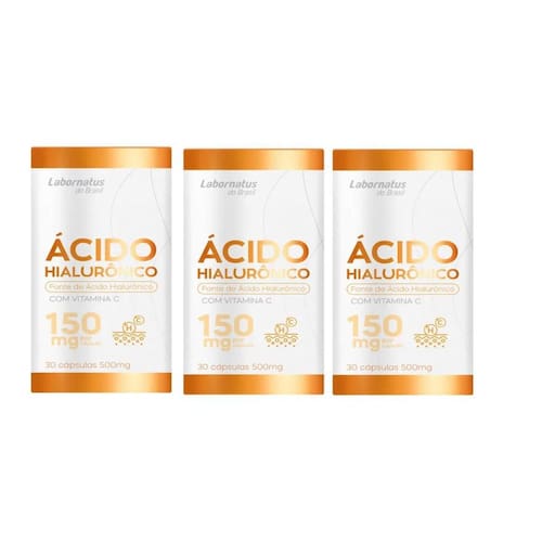 Benefícios do ácido hialurônico Macro moléculas de ácido hialurônico são maiores e são responsáveis por hidratar a superfície da pele. Excelente concentração de hialurônico e mineralizado com vitamina c. As cápsulas ou os comprimidos com ácido hialurônico têm um forte poder antienvelhecimento, pois ajudam a reparar os tecidos e a manter a elasticidade da pele, porém, também pode ser para tratar problemas de olhos e ossos. ósseos e dores articulares além disso, para além de tratar também previne e retarda o aparecimento das primeiras rugas e das rugas mais profundas, tornando-as mais finas, por isso, pode se tomar estas cápsulas ainda antes das rugas surgirem. 1 combate a flacidez 2 ácido hialurônico hidrata a pele 3 ajuda a reter a hidratação já existente na pele 4 ácido hialurônico tem ação preenchedora e anti-flacidez 5 em procedimentos de harmonização facial 6 ameniza marcas de acne 7 auxilia no metabolismo das proteínas e gorduras. Dados técnicos do produto Nome do produto: ácido hialurônico Quantidade de cápsulas: 30 cápsulas por frasco Tipo de cápsula: gelatinosa Ingredientes do produto: ácido hialurônico 150mg e vitamina c 45mg Miligramas por cápsula: 500mg Peso da unidade: 54g Modalidade da venda: kit - 3 frascos com 30 cápsulas cada Quantidade de cápsulas: 90 cápsulas totais Modo de ingestão: 1 cápsula ao dia Não contém: glúten, lactose, gordura trans, açúcares, derivados e nenhum tipo, sódio Embalagem: 1 frasco com lacre de segurança 2 caixa protetora externa lacrada Origem: laboratorial, industria Nacionalidade: brasil Registro: anvisa notificação 240/2018 - 243/2018 Marca: Não Informado Ean: 7898631703314