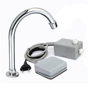 acionador de pedal elétrico para torneira de inox, indicado para ambientes que não é permitido o contato manual com a bica, para evitar contaminação cruzada na hora de atender o paciente. Indicado para consultórios, clinicas, restaurantes, hospitais, laboratórios e para outros tipos de ambientes. Evita o contato manual e contaminação cruzada, proporciona economia de até 70% de água, e maior higienização. Para acionar o pedal basta pressionar com o pé , retirando o acionamento é interrompido. Evita contato manual e contaminação cruzada proporcionando maior higiene. - utilizado em hospitais, clinicas, laboratórios, consultórios, industrias, restaurantes e até mesmo residências. - proporciona economia de até 70% de água. - pode ser instalado com engates flexíveis ou mangueiras fixadas com abraçadeiras. Recomendamos a instalação com bica sem registro para evitar a contaminação cruzada e o fechamento do registro desta forma forçando e podendo danificar o pedal. Não acompanha torneira bica