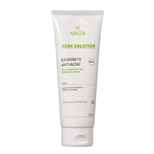 ACNE SOLUTION ADCOS SABONETE ANTIACNE O Acne Solution Sabonete Antiacne é um sabonete líquido que possui prebióticos e ácido salicílico em sua composição, sendo o primeiro a combinar esses dois ativos