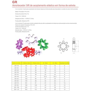 - Modelo: GR-19 - Material do elemento: poliuretano - Torque avaliado: 2.500 N.M - Rotação máxima: 6000 r/min