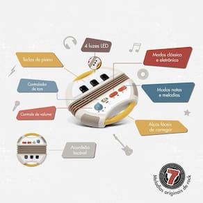 Principais Características: Experiência Sensorial Completa : O acordeão pode ser apertado e esticado como um instrumento real, promovendo estímulos sensoriais. Teclas com Luzes e Sons : As teclas funcionam como um piano, com luzes que divertem o bebê e incentivam a coordenação motora e cognitiva. Modos de Exploração Musical : Permite tocar notas como na escala musical ou reproduzir uma das sete melodias de rock, incentivando a criatividade. Botões de Controle de Tom : O controle de efeitos sonoros torna a experiência musical mais rica e estimula o desenvolvimento cognitivo. Portátil e Prático : Com alças e alto-falantes de qualidade, o acordeão pode ser levado para qualquer lugar, proporcionando uma experiência completa de música e diversão.