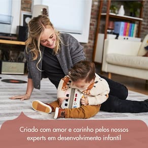 Especificações Técnicas: Idade Recomendada : A partir de 1 ano Dimensões : 18 x 18 x 5 cm (A x C x P) Peso do Produto : 385 g Material : ABS, PP, EVA, componentes eletrônicos Certificação de Segurança : CE-BRI/IQB 006367 56059/24-002 Alimentação : 2 pilhas AAA (1,5 V) (não inclusas) Controle de Volume : Possui 3 níveis de volume exclusivos