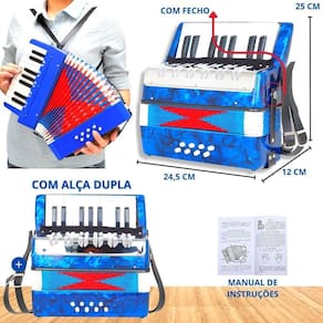 Acordeon Sanfona Infantil 8 Baixos 17 Teclas - Azul