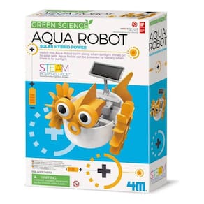 Observe este Acqua Robot nadando quando a luz do sol incidir sobre suas células solares. O Acqua Robot também pode ser alimentado por bateria quando não há luz solar.
