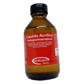 Acrílico Auto Líquido 100ml Resina Consertos Reparos Triunfo Resina Acrílica Auto Polimerizante LÍQUIDO 100ml É necessário misturar com Resina Acrílica PÓ ODONTOLOGIA - Reembasamentos - Consertos e adições de próteses e PPR - Confecção de próteses imediatas provisórias - Confecção de moldeiras individuais - Confecção de bases de prova de - Confecção de placas inter oclusais - Confecção de guias cirúrgicos REPAROS GERAIS - Reparos automotivos - Carcaças de Notebook - Videogames - Modelos de silicone - Reparos em peças de plástico em geral INFORMAÇÕES TÉCNICAS - Produto composto de acetona, ácido cianídrico e álcool metílico - Indicado para consertos e reembasamentos - Validade: 10 anos - Registro na ANVISA: 80772730007 O que vem na caixa - 1 Frasco LÍQUIDO 100ml Marca: Não Informado Ean: 7793239730505