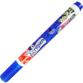 Caneta para pintar e marcar tecidos permanentemente. Para tecidos de algodão. Não utilizar em tecidos sintéticos ou engomados. CARACTERÍSTICAS Excelente fixação. Super resistência à lavagens.MODO DE USAR Lavar o tecido antes da pintura, para retirar os resíduos de goma. A ponta da caneta Acrilpen permite conseguir diferentes espessuras de traços. Usando na posição vertical obtemos traços finos, inclinando-a obtemos traços mais grossos. Após a pintura, aguarde 72 horas para lavagem. Após o uso, guardá-la na posição horizontal.