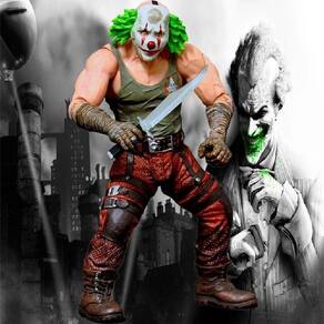 Action figure clown thug: batman arkham city - dc collectibles O game que dá continuação para arkham asylum, batman: arkham city desenvolvido pela rocksteady studios para diversas plataformas. Bairros inteiros de gotham city são isolados criando uma super-prisão do tamanho de uma pequena cidade, chamada de arkham city é dominada pelos piores criminosos. A dc direct criou a linha de action-figures derivadas do jogo. Agora você pode recriar cenas icônicas de batman contra os bandidos e degenerados de ghotam Marca: Não Informado