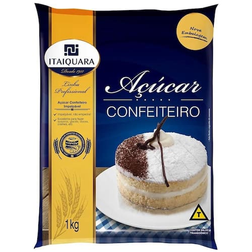 Açúcar Impalpável Confeiteiro Itaiquara 1kg Açúcar Impalpável Confeiteiro Itaiquara 1kg O Açúcar Impalpável Confeiteiro Itaiquara é um ingrediente essencial para confeitaria, ideal para dar acabamento delicado e sofisticado a bolos, doces e sobremesas. Com uma textura ultrafina e a adição de amido, ele evita a umidade e proporciona um toque aveludado perfeito para coberturas, glacês, pasta americana, chantilly e outras preparações. Textura ultrafina: Açúcar de confeiteiro com amido, garantindo um acabamento seco e homogêneo. Versatilidade: Ideal para polvilhar doces, preparar glacês, coberturas, recheios e decorar sobremesas. Maior estabilidade: A presença de amido evita a absorção de umidade, mantendo a leveza e o aspecto impecável por mais tempo. Facilidade no uso: Dissolve facilmente, garantindo preparos lisos e bem estruturados. Embalagem de 1kg: Quantidade ideal tanto para uso doméstico quanto . Qualidade Itaiquara: Produto desenvolvido para atender às exigências da confeitaria com excelência. Aprimore suas receitas com o Açúcar Impalpável Confeiteiro Itaiquara e garanta doces mais bonitos, leves e saborosos.