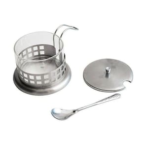 AÇUCAREIRO COM COLHER EM METAL E VIDRO DE 200 ML - 3822.