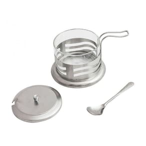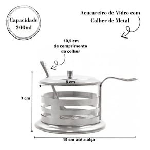 AÇUCAREIRO COM COLHER EM METAL E VIDRO DE 200 ML - 3822.