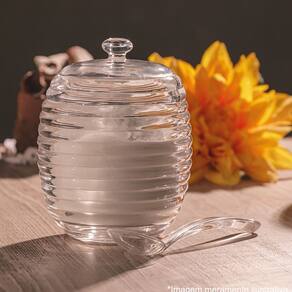 Açucareiro de Cristal com Colher e Tampa Colméia 210ml 1317 - Lyor - Dorémi Casa e Decor