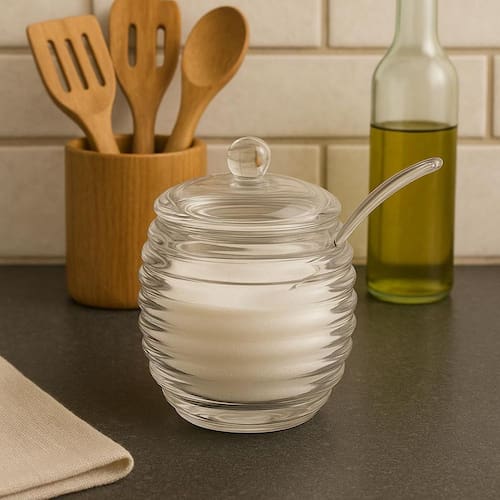 Descrição do produto O açucareiro com tampa e colher é a escolha perfeita para quem busca praticidade, resistência e um toque de elegância na mesa. Fabricado em plástico transparente de alta qualidade, ele combina durabilidade com o charme do design refinado, ideal para uso diário ou para compor um café da manhã especial. Disponível em modelos com acabamento liso facetado ou espiralado, esse açucareiro é versátil e funcional, sendo ótimo para armazenar não só açúcar, mas também condimentos, chás ou adoçantes. Leve mais praticidade e charme para sua rotina com este açucareiro funcional, elegante e sempre à mão na hora de servir Benefícios e características Design moderno e sofisticado: transparente, combina com qualquer decoração Tampa com pegador e colher inclusa: praticidade no uso diário Versatilidade: pode ser com açúcar, adoçante, ervas, temperos ou geleias Ficha técnica Marca: jolitex mek Modelos: linea e flavors Medidas Linea: 11x8,5x8,5cm Flavors: 11,5x8x11cm Capacidade: 200ml Marca: Não Informado