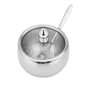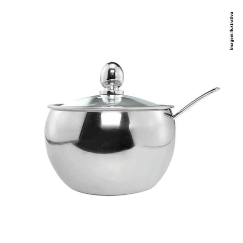 Açucareiro Em Aço Inox Com Tampa De Vidro E Colher Cozinha. Luxuoso em Aço Inox com Tampa de Vidro e Colher ,material resistente e de excelente qualidade. Seu design é super moderno, com formato redondo e acabamento cromado, trazendo toda praticidade e requinte para o seu dia a dia. Um toque de charme a mais em sua mesa. ESPECIFICAÇÕES: -Material: Aço Inox e Tampa de Vidro -Peso: 152gDimensões apenas do Açucareiro, sem considerar a tampa: -Diâmetro Superior: 8,5cmDiâmetro Inferior -base 6cmProfundidade 5,5cm CONTÉM: 01 Açucareiro Em Aço Inox Com Tampa De Vidro E Colher Cozinha