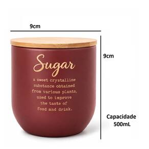Açucareiro Em Aço Inoxidável Com Tampa De Bambu 500mL Vermelho Carmim -