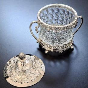 Açucareiro Indiano Acabamento Fino Em Metal Vidro 20x14 Açucareiro de Metal com acabamento fino 20 x 14 Luxuoso açucareiro fabricado em metal e vidro. Peça super resistente e de excelente qualidade garantindo sempre um alimento mais saudável. Seu design moderno, de acabamento brilhante, traduz praticidade e requinte para o seu dia a dia. Um toque de charme em sua mesa. Medidas: Altura 20 cm Largura 14 cm Produto . Qualidade excepcional REF: Q1983