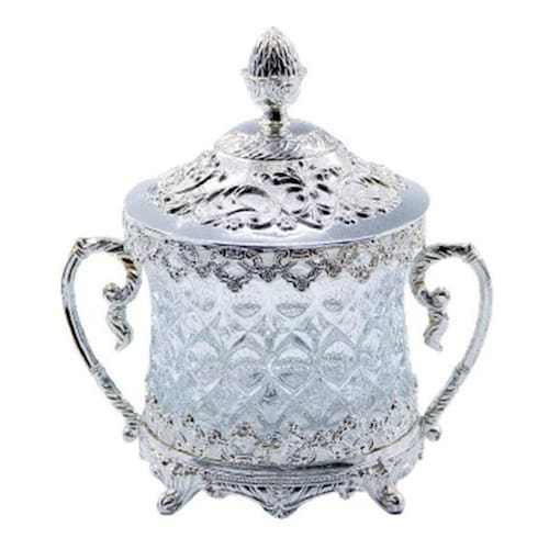 Açucareiro Indiano Acabamento Fino Em Metal Vidro 20x14 Açucareiro de Metal com acabamento fino 20 x 14 Luxuoso açucareiro fabricado em metal e vidro. Peça super resistente e de excelente qualidade garantindo sempre um alimento mais saudável. Seu design moderno, de acabamento brilhante, traduz praticidade e requinte para o seu dia a dia. Um toque de charme em sua mesa. Medidas: Altura 20 cm Largura 14 cm Produto . Qualidade excepcional REF: Q1983