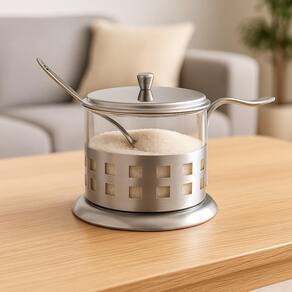 Benefícios do Produto Design elegante combina vidro transparente com acabamento em inox. Com colher inclusa praticidade para servir açúcar ou adoçante. Compacto e funcional ideal para acompanhar cafés, chás e sobremesas. Higiênico e durável materiais de qualidade que não enferrujam. Leve e fácil de manusear ideal para uso diário ou ocasiões especiais.