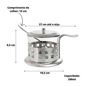 AÇUCAREIRO VIDRO E INOX COM COLHER - 200 ML - NS1369.