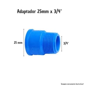 Uma adaptador soldável/rosca macho com o tamanho selecionado.