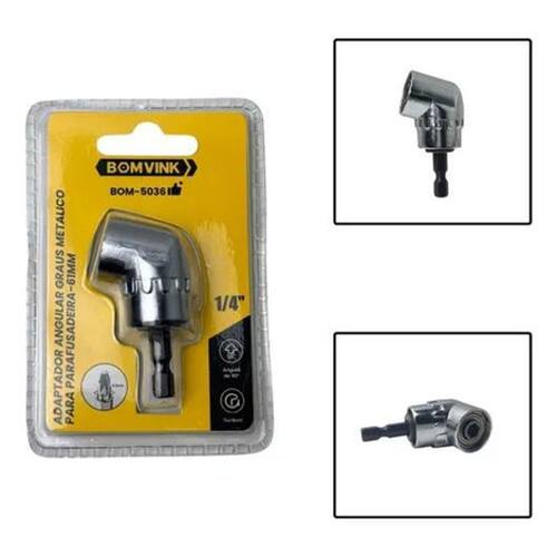 Adaptador angular metalico 61mm - bom-5035 O adaptador angular metálico 61mm 1/4 com ângulo de 90 graus é a escolha perfeita para alcançar parafusos em espaços de difícil acesso, permitindo um trabalho preciso e eficiente sua estrutura durável e robusta, feita de metal de alta qualidade, oferece resistência e longa vida útil, mesmo em condições de uso intenso. Compatível com parafusadeiras e furadeiras de encaixe 1/4, este adaptador facilita a execução de tarefas com agilidade e segurança, flexibilidade o esforço do usuário. Ideal para profissionais e reparos domésticos, esse produto é essencial para quem busca praticidade e resultados impecáveis Especificações: - marca: bomvink; - modelo: bom-5036; - processo: eletrogalvanização de polimento fino; - ângulo de 90 com rotação para a esquerda e direita; - aplicação: para montagem e desmontagem de parafusos em espaços estreitos; - encaixe: 1/4; Conteúdo da embalagem: - 01 adaptador angular metálico 61mm 1/4; : 90 dias.