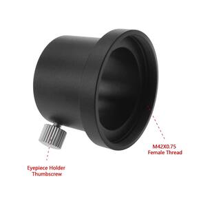 Você tem uma noção fios no seu telescópio ou acessório, mas deseja para se adaptar a um padrão ocular de 1,25 "? O adaptador permite que você faça isso de fios de 1,25 " ocular a noção de para de ou câmeras com um conector de 1,25 ". As possibilidades são incrivelmente diversificados – Ligar a uma roda de filtro, adaptador para outra com noção de fios, com um desvio guider para astrofotografia ou de visual. O adaptador tipos mais comuns em astronomia amadoras são os padrões de 1,25 " e noção. Isso permite que você encontre a solução certa. - Adapta-se da rosca T-2 ao encaixe padrão de 3,15 cm; parafuso de fixação lateral - Para oculares de 1,25 polegadas ou câmeras com um conector de 3,16 cm - Adaptador fêmea de 1,25 polegadas rosqueia em fios T machos "42 mm x 0,75 mm" e aceita acessórios oculares de 1,25 polegadas - Anodizado em preto para evitar reflexos indesejados - Possui um parafuso de aperto manual