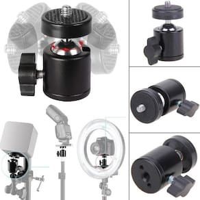 Adaptador ballhead suporte cabeça para tripe ring light webcam câmera sapata pedestal rosca bola rotativa 1/4 360 graus atenção só compre produtos com Ballhead Mini cabeça ball head para tripés, iluminadores e câmeras. As cabeças de tripé ball head podem suportar cargas pesadas, e mover-se suavemente, com possibilidade de travamento em diversos ângulos e com travamento super seguro. Recomendado para handycam, dslr, camcorders, iluminações entre outros. A mini cabeça ball head é recomendada para fotógrafos que buscam um produto que gere mais versatilidade para suas produções, uma vez que pode ser Utilizado em tripés de câmera ou de iluminação, mini tripé para celular não inclusos e em outros equipamentos, desde que esse possuam pino compatível com rosca da mini ball head. Além disso, o modelo conta com seu próprio um pino padrão , compatível com câmeras,iluminadores de led, suportes para celular e outros não inclusos . Ou seja, o usuário poderá fixar a mini cabeça ball head em um equipamento enquanto ela mesma é conectada a outro, tornando mais prático os momentos em estúdio. Especificações: Tipo do parafuso de encaixe: 1/4 Carga máxima: 2,5 kg Pan: 360graus Placa tamanho: 3,5 cm de diâmetro Cabeça peso: 0,12 kg Altura da cabeça: 6,5 cm Atenção: imagens meramente ilustrativas, câmeras, celular, suporte, tripé e ring light não acompanham o produto. Contem: 1 cabeça de tripé - ball head Postamos em até 24 horas úteis.