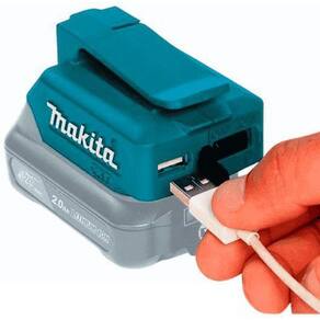 Adaptador de Bateria 12V para Dispositivos com USB e Gancho Makita - ADP06 Cor: Único Tamanho: ÚNICO Adaptador de Bateria 12V Compacto Makita CXT com Gancho para Dispositivos USB - ADP06 fornece energia para qualquer dispositivo móvel com entrada USB.