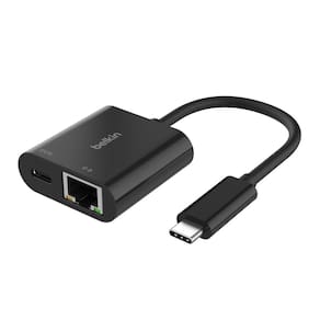 Adaptador de carga Belkin Connect USB-C para Ethernet + 100 W com porta Gigabit Ethernet e porta USB-C - 10/100/1000 Mbps para conexão rápida à Internet - Compatível com iPhone 15, Samsung Galaxy S24 e mais