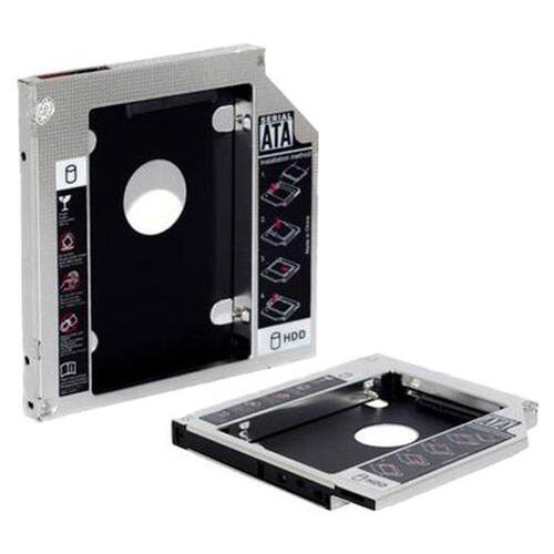 - Esta é uma ótima solução para aqueles que querem adicionar um segundo HD ou SSD em seu notebook. - Esse adaptador cabe na unidade de CD/DVD encontrado na maioria dos notebooks. - Simplesmente Retire a unidade de CD/DVD e substitua-o com nosso Adaptador Caddy. - Compativel com HD e SSD de 2,5`` Sata. Plug and Play - Como um HDD primária, conexão rápida e confiável! - Nenhum driver de software ou fonte de alimentação de cabos é necessário. - Interface de disco rígido: SATA. Portátil / interface de placa mãe: SATA. - Ajustes para 12,7mm, unidade de disco rígido de interface SATA.
