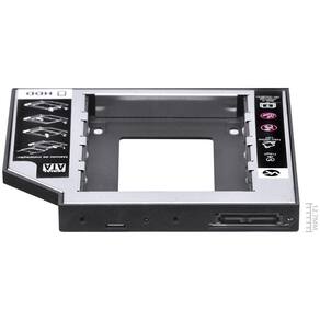 O adaptador Caddy AC-127 da Vinik permite a substituição do leitor de DVD/CD do seu notebook fazendo com que ele comporte mais um HD/SSD, aumentando assim a memória, capacidade de armazenamento e velocidade do seu equipamento. Compatibilidade: Interface universal SATA 12.7mm Disco rígido suportado: 2.5 HD, SATA I II III, SSD. Suporta tecnologia SATA 3.0. Velocidade máxima de até 6Gbps. Material: alumínio e aço inoxidável Dimensões: 128x126x12,8mm Capacidade do disco rígido suportado: 1TB Cor: Prata Suporta instalação de um segundo sistema operacional.