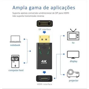Adaptador conversor DisplayPort para HDMI com suporte a resolução 4K a 60Hz. Ideal para conectar computadores, notebooks ou placas de vídeo com saída DisplayPort em monitores, TVs ou projetores com entrada HDMI. Oferece excelente qualidade de imagem e compatibilidade com diversos dispositivos. Especificações Técnicas: Tipo: Adaptador DisplayPort para HDMI Resolução Suportada: Até 4K a 60Hz Conexões: DisplayPort macho para HDMI fêmea Aplicações: Transmissão de áudio e vídeo digital em alta definição Compatibilidade: Monitores, TVs, projetores e dispositivos com HDMI Permite conexão de DisplayPort em telas HDMI Transmissão estável com suporte a 4K60Hz Fácil instalação e uso imediato Ideal para e doméstico Marca: Não Informado