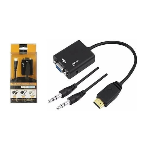 Adaptador Conversor Vga-Hdmi Conversor de vídeo hdmi para vga computador tv - fácil de usar instalação rápida e sem necessidade de configuração. - o conversor hdmi para vga + áudio para converte as conexões saída hdmi para saídas analógicas de áudio e vídeo em uma com eficiência e qualidade. - transmite som e imagem de computadores para tvs, monitores, projetores, entre outros dispositivos com conexão vga, mantendo a transmissão simultânea de áudio e vídeo. Fácil de usar, leve e compacto. Não requer instalação de software ou configurações complicadas. Excelente opção para treinamentos corporativos, palestras, salas de aula, salas de reunião, centros de convenções e buffets. Aplica-se em: - computador/ dvd/ laptop / camera digital/ trablet pc / media player - toda a área de produtos com entrada hd - sinal de áudio e vídeo para tv/ monitor / projetor Especificações: - peso: 70g - compatibilidade: hdmi/vga - resolução até 720p / 1080i / 1080p - material: plástico, metal e fios de cobre Dimensões: - comprimento do cabo: 25cm conversor - comprimento do cabo: 48cm cabo p2 Itens inclusos: - 01 cabo conversor hdmi para vga fêmea com áudio; - 01 cabo de som auxiliar p2; Homologação Anatel: 080281811799 Marca: Cabo Conversor Ean: 6017660061825