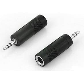 Adaptador de Áudio P10 6.35mm para P2 3.5mm Descrição O adaptador P10 x P2 é perfeito para fazer a ponte entre instrumentos musicais, fones e computadores ou amplificadores. Ele é muito útil em estúdios de gravação, pois permite uma perfeita comunicação entre aparelhos com diferentes conexões sem perda da qualidade do sinal. O adaptador é feito de plástico termo formado e metal inoxidável, é compacto e pode ser transportado até dentro de carteiras. Garanta limpeza nas gravações e no som dos seus instrumentos. Feito em material resistente a pequenos choques e possui conector P2 revestido em metal inoxidável.