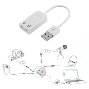Adaptador de Áudio USB 7.1 Virtual 3D, ideal para conectar fones de ouvido e microfones com entrada P2 3,5 mm em dispositivos via USB. Proporciona som surround virtual 7.1, com funções de gravação, karaoke e mixagem, substituindo a placa de som tradicional. Especificações Técnicas