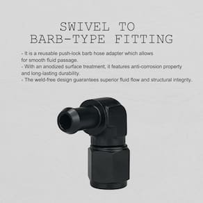Adaptador de encaixe de mangueira 8AN fêmea para 3/8 farpas de 90 graus, alumínio giratório preto, pacote com 2
