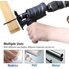 Nossos produtos estão em e são todos novos Adaptador de Furadeira para Serra Removível Este produto é uma ferramenta útil no seu dia a dia, é feito de um material de alta qualidade, prático, fácil de operar e usar, ampla gama de aplicações, tem uma longa vida útil, venha experimentar, ele não te deixará na mão. - Adequado para vários tipos de furadeiras elétricas. - Furos extras em ambos os lados da cabeça da serra podem facilmente instalar e remover a alça, que é confortável de segurar e fácil de operar. - O mandril da lâmina de serra pode substituir rapidamente a lâmina de serra, abrir a fivela no sentido horário, inserir a lâmina de serra necessária e soltar a fivela para uso. - Com diferentes lâminas de serra, diferentes materiais podem ser cortados. - O defletor de proteção alargado de 5 cm pode proteger eficazmente as mãos dos trabalhadores de salpicos de detritos. - Fácil de usar e modificar, com esta ferramenta você não precisa comprar a serra elétrica, o que pode economizar dinheiro. Especificações: Material: ABS + metal Cor preta Diâmetro da haste de conexão da broca elétrica: 6,35 mm 1/4 Haste do triângulo NÃO INCLUI Lâmina de serra . Incluído no Pacote: 1 Adaptador de serra alternativa portátil Marca: Não Informado