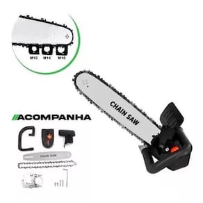 Adaptador de serra eletrica + esmerilhadeira Motoserra eletroserra 11,5'' esmerilhadeira angular lixadeira 4'' 1100w 220v importway iwmts-002transforme a sua esmerilhadeira em uma motosserra elétrica com lâmina. Kit de fácil montagem para você que deseja ter uma motossera com o melhor custo benefício. Para garantir a sua segurança, cheque sempre o encaixe da serra na esmerilhadeira.Informações técnicasproduto: novomarca: importwaymodelo: iwmts-002voltagem: 220vpotência: 1100wuso: doméstico hobby aplicação: cortar madeira, esmerilhar, lixar e cortar metais e pedras a secodiâmetro do disco: 101 mm / 4 não incluso dimensão do eixo: m14rotações: 11.000 rpmrolamentada: simvelocidade variável: nãoquantidade de velocidades: 1função motoserramaterial da corrente: aço carbonodiâmetro de corte da madeira profundidade : 28 cmquantidade de dentes da corrente: 22comprimento da corrente: 82 cmespessura da corrente: 4,7mmtamanho da barra de guia: 34 cm de comprimento e 6 cm de larguracomprimento total do suporte: 39 cmquantidade da ligação da unidade: 45 seçõesespecificações- punho easy grip de uso fácil e confortável- leve, compacta e fácil de limparpeso e medidas aproximados medidas do produto: 18 x 18 x 62 cm altura x largura x comprimento comprimento da serra: 28 cmcomprimento do cabo de força: 1,90 mmedidas da embalagem: 12 x 14 x 35 cm altura x largura x comprimento peso: 3,45 kgitens inclusos: 1 esmerilhadeira angular, 2 empunhador, 1 corrente, 1 barra da corrente, 1 garrafa de óleo, 1 suporte da corrente, 1 protetor de corrente, 1 anteparo contra poeira, 1 chave extratora de disco, 1 kit montagem, 1 kit parafusos, 1 manual português Marca: Nakasaki Ean: 7805782457843