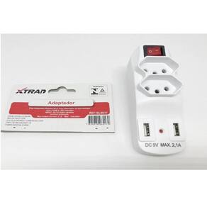Com o Adaptador de tomada XTRAD SL-6017 você terá suporte para mais 2 tomadas + 2 USB disponíveis para utilizar seus dispositivos eletrônicos ou carregar seus dispositivos móveis. Características: - Plug Adaptador, 2 Saídas, 2P+T, com interruptor de ligar/desligar - Com 2 USB e LED indicador - Entrada: AC110-230V~50-60hZ - Saída: DC5V +/- 5% - Max corrente de saída: 2.1A Max: 10A/250V~ Ean: 7890980060179