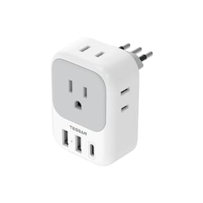 Adaptador de tomada de viagem TESSAN Italy (tipo L) com 4 tomadas CA e 3 portas USB. Este adaptador de alimentação da Itália foi especialmente projetado para uso em países como Itália, Chile, Cuba, Eritreia, Etiópia, Líbia, Maldivas, San Marino, Síria, Uruguai, Cidade do Vaticano; ideal para uso de viajantes, empresários e estudantes estrangeiros em aeroportos, hotéis e dormitórios; adaptador de plugue de tamanho pequeno e leve na Itália, economizando espaço em sua mala, mochila e bolsa; adaptadores italianos de design pequeno e leve podem carregue 7 dispositivos por vez, compatível com celular, tablet, laptops, câmera, fone de ouvido e mais dispositivos - Adaptador de plugue tipo L: alimentação da Itália O adaptador funciona em muitos países europeus, como Chile, Roma, Uruguai, Florença, Veneza, Milão, Santiago, Líbia, San Marino; Adequado para viajantes, empresários e estudantes estrangeiros - Carregamento rápido USB C de 15 W: a saída do adaptador USB C dos EUA para a Itália é de 15 W no máximo, carregando rapidamente seu telefone, fones de ouvido e outros dispositivos; o adaptador de viagem Itália também tem 2 portas USB A para atender às necessidades de carregamento de vários dispositivos - 7 em 1 Itália adaptador de plugue: O adaptador Tipo L para a Itália possui 4 tomadas AC (2500W máx.), 1 USB-C (5V 3A máx.) e 2 USB-A (5V 2,4A máx. por porta); O adaptador de alimentação para viagens à Itália pode carregar 7 dispositivos simultaneamente, reduz o tempo de espera e não precisa trazer adaptadores extras - Compacto e portátil: tamanho compacto de 3,15 × 2,24 × 2,36 polegadas e leve de 3,59 onças; o plugue adaptador italiano cabe facilmente em sua bolsa; adaptador de plugue dos EUA para a Itália com design de 4 lados para conectar adaptadores grandes sem bloqueio; sem proteção contra sobretensão, adequado para navios de cruzeiro - NOTA: Este adaptador de plugue para a Itália não é um conversor de voltagem, certifique-se de que seu dispositivo suporte voltagem dupla de 100 a 250 V; Se você planeja usar um secador de cabelo, alisador, ou chapinha, certifique-se de que eles suportem dupla tensão