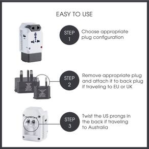 - Viaje como um profissional: o adaptador de tomada de viagem multifuncional inteligente Conair Travel oferece uma combinação das quatro configurações de plugue adaptador regional mais comuns em uma unidade compacta; este adaptador de plugue de alimentação versátil inclui uma porta de carregamento USB-A e permite que você conecte quatro aparelhos ao mesmo tempo