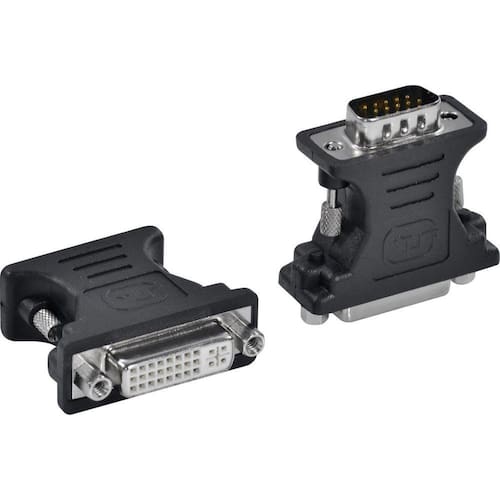 Descrição: Adaptador DVI / VGA Vinik realiza a conversão de um cabo DVI-I para um monitor ou computador com conexão VGA fêmea.; Dados Técnicos: Adaptador DVI / VGA; VGA 15 pinos; DVI 24+1 pinos; Revestimento: PVC;
