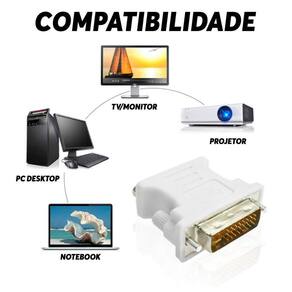 Compatibilidade Universal: Converte sinal digital DVI 24+5 pinos para analógico VGA, permitindo conectar placas de vídeo, notebooks, PCs e consoles a monitores, projetores ou TVs com entrada VGA.