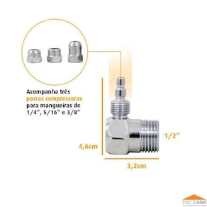 Acompanha três porcas compressoras para o perfeito encaixe da mangueira evitando vazamentos.