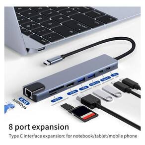 Especificações: - tipo de interface: usb tipo c - número de portas: 8 - acabamento: alumínio - comprimento do cabo: 12,5cm - função: hdtv, leitor de cartão, rj45 ethernet - padrão: usb 3.0 - tipo: 8 em 1 - material: alumínio - porta 1: rj45 - porta 2: tf/sd card - porta 3: hdtv port - porta 4: pd change - porta 5: usb 3.0 - compátível 1: macbook pro air - compátível 2: type-c port laptop - compátível 3: lenovo, dell, asus. - compátível 4: nintendo switch