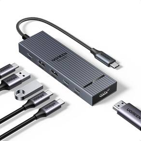 Ugreen revodok pro 10gbps usb c hub hdmi 4k 60hz thief adapter tipo c 3.2 gen 2 pd 100w estação de carregamento compatível com/macbook/pro/air/m3/m2/m1,/,//17/pro/max/air,/galaxy s25 Conectividade 6 em 1 o hub usb c revodok extrai ainda mais potencial da porta usb-c do seu laptop com 1 porta hdmi 4k a 60 hz, 1 porta de carregamento pd de 100w, 2 portas usb-c de 10 gbps e 2 portas usb-a de 10 gbps. Este dock usb c é perfeito para suas necessidades de conectividade com monitores externos e transferência de dados. Dica: certifique-se de que a porta usb c do seu computador/tablet/celular suporte saída de vídeo para que a porta hdmi funcione corretamente. Transferência de dados ultrarrápida de 10 gbps o hub usb c de 10 gbps é equipado com 4 portas usb 3.2 2 usb-c e 2 usb-a com velocidade de transferência de dados ultrarrápida de 10 gbps, 2 vezes mais rápida que o usb 3.0 e 20 vezes mais rápida que o usb 2.0. Perfeito para conectar discos rígidos, leitores de cartão e pen drives, permitindo a transferência de arquivos grandes em segundos. Observação: essas portas de dados não suportam saída de sinal de vídeo nem carregamento. Conecte um monitor externo 4k o hub hdmi usb c suporta a resolução máxima de 4k a 60 hz compatível com versões anteriores de 3840 x 2160 a 30 hz, 2560 x 1440 a 120 hz e 1080p a 144 hz . Você pode duplicar ou expandir o monitor para uma segunda tela maior. Ideal para transmitir vídeos em 4k para uma tela maior ou fazer uma apresentação com um projetor no escritório. Carregamento rápido pd 100w esta docking station usb c oferece até 85w de potência de carregamento se você conectar um carregador de 100w, o hub consome 15w através da porta de carregamento pd, que carrega seu dispositivo host laptop/tablet/celular em alta velocidade. Observação: 1. Não conecte periféricos como disco rígido ou monitor através desta porta pd, pois ela não suporta transferência de dados e vídeo. 2. O carregador de 100w não está incluído. Alta compatibilidade o adaptador multiporta usb c é compatível com/macbook/pro/ m4/m3/m2/m1,/max/pro,/2024 - 2019 ,/macbook/air,/ m4/m3/m2/m1,/2025 - 2020 ,/,/mini/m4,/imac,/xps/17/15/13,/magicbook/16/pro,/thinkbook/14,/asus,/zenbook,/matebook/pro/14/13,/surface/pro/10/9/8,//pro/2024 - 2018,//air/2025 - 2020,/galaxy tab s11/s10/s9 ultra,//17//17/pro//17/pro/max//16/15/series,/galaxy s25/s25+/s25 ultra/s24 series, steam,/deck,/ally,/rog, etc. Homologação anatel nº 12070-21-04423 -marca ugreen -cor cinza espacial -material alumínio, plástico -modelo cm818 p/n 45363 Homologação Anatel: 138632314286
