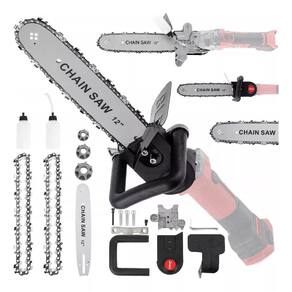 Com o Motosserra Adaptador Lixadeira Esmerilhadeira, você pode transformar sua esmirilhadeira em uma potente motosserra elétrica. Com uma espada de 30 cm, esse kit é fácil de montar e oferece a praticidade que você precisa para realizar cortes precisos em madeira.