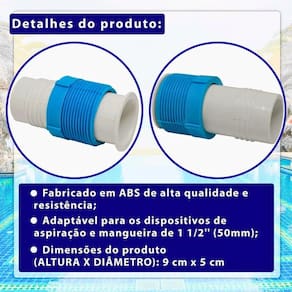 Serve para piscinas que utilizam sistema de aspiração com mangueira de 1 1/2 (50mm).
