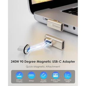 - Conexão magnética de 24 pinos: adaptador USB-C macho Magtame fêmea de 90 graus USB-C com seu design magnético inovador, este adaptador minimiza o desgaste na porta do seu notebook causado por conexão e desconexão frequentes. Com 24 pinos banhados a ouro, garante uma superfície de contato maior para uma conexão mais estável em comparação com um adaptador de 11 pinos.