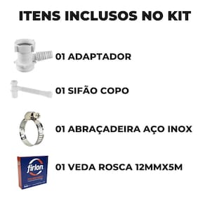 Adaptador para máquina de lavar louça + sifão copo universal + abraçadeira 1 + fita veda rosca
